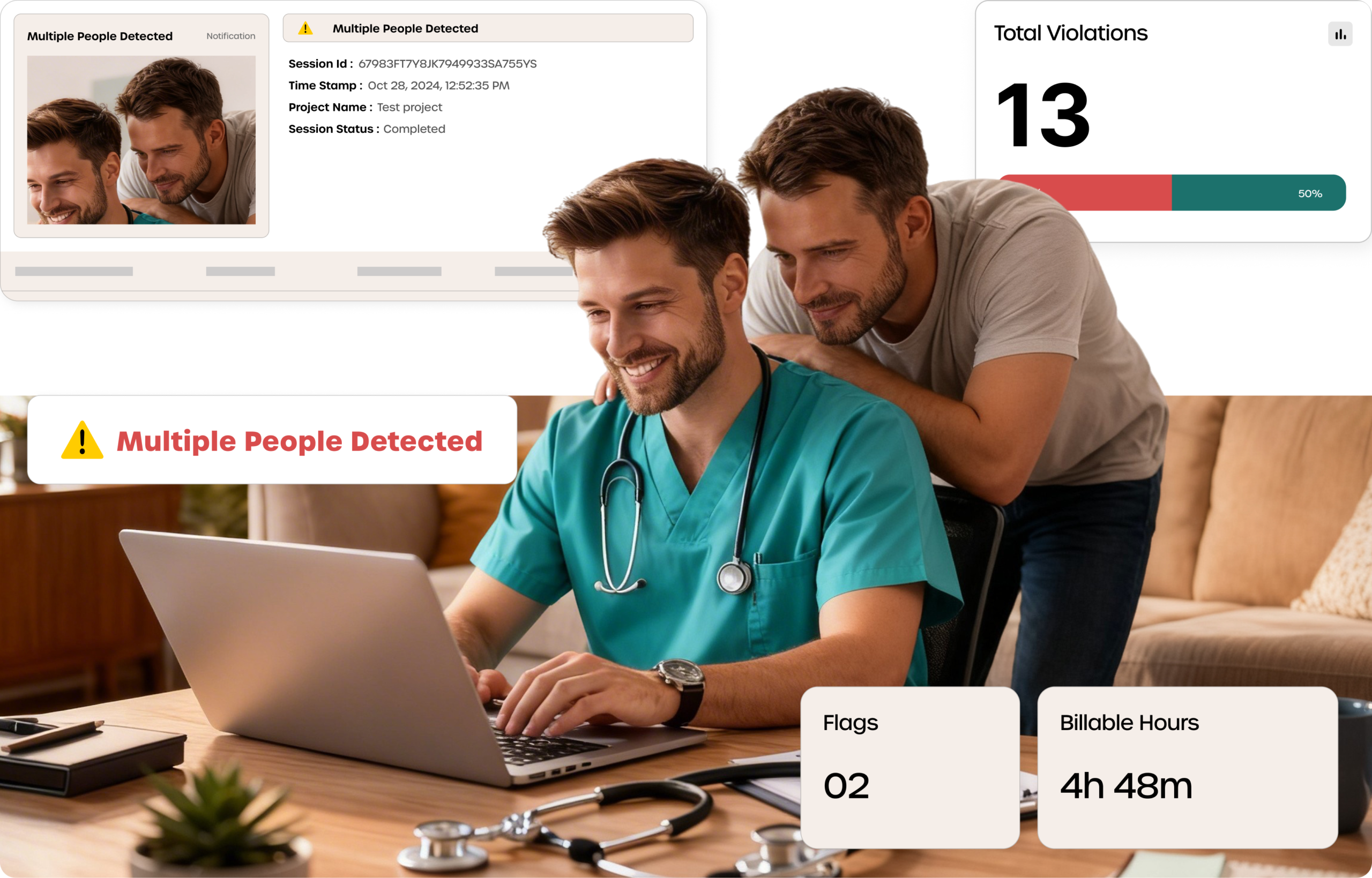 Generate time-stamped logs of identity verification, security alerts, and screen-blocking events ready when auditors ask how you ensure unauthorized persons cannot view PHI in remote locations.